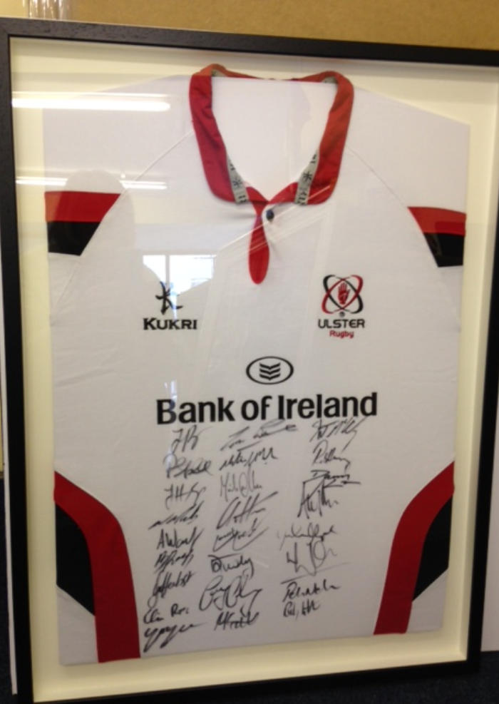Tom West Picture Framing are delighted to have framed some shirts (2 Ireland and 1 Ulster) for auction at the